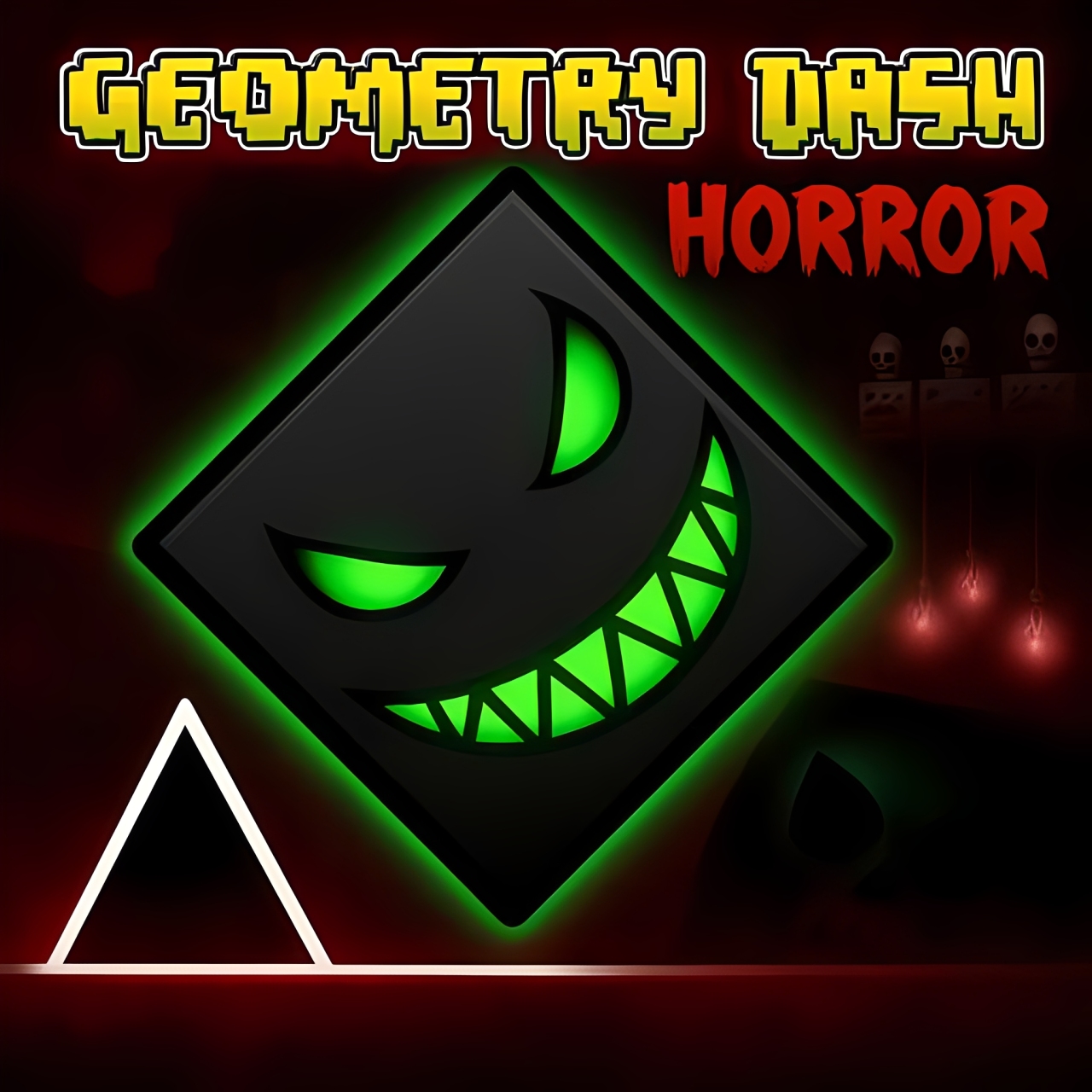 Geometry Dash Horror is a complete "transformation," turning the familiar rhythm-based dance game into a dramatic and captivating nightmare. From the start, this arcade game plunges you into a dark world where bright neon lights are replaced by shades of black, blood-red, and gray. The game's atmosphere is intensely horror-filled, with dilapidated corridors, wandering ghosts, and eerie sounds emanating from the shadows. This change creates an irresistible allure, keeping players on edge and curious to discover what awaits them. Enter the darkness now and survive the haunting rhythm that lurks in every shadow!