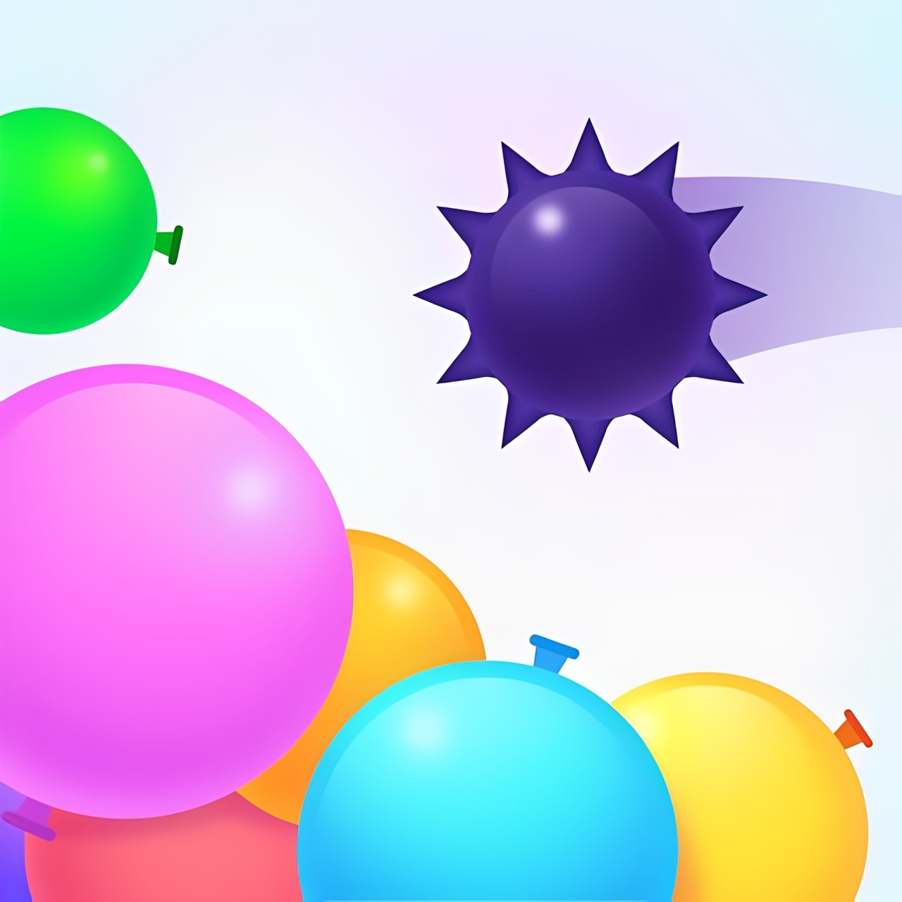 Thorn and Balloons is an incredibly addictive physics puzzle game with simple gameplay that demands meticulous calculation. The game immerses players in a world where tiny spiked balls become "heroes," destroying colorful balloons. This puzzle game uses gentle 2D graphics that don't strain the eyes, combined with fun "pop, bang" sounds each time a balloon explodes. You can't just shoot randomly to win, you have to calculate the bounce angle and impact force of the spiked ball. The feeling of watching the spiked ball fly through a winding path and finally hit its target is truly satisfying. Join and try right now!